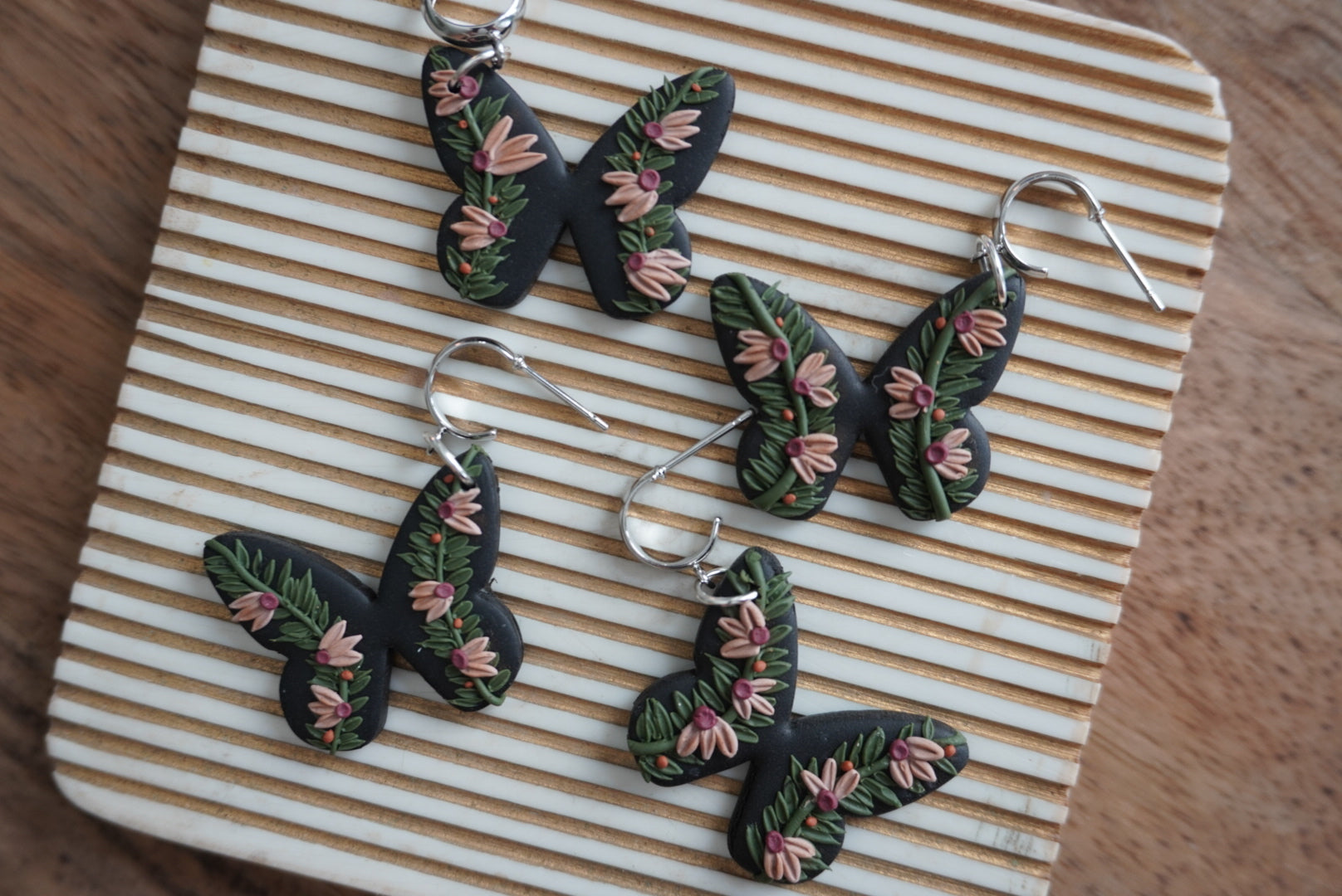 Oh, so enchanting.. a delicate mix of black butterflies, leafy vines, and soft florals. Each piece is unique. No two pieces are exactly the same 🖤